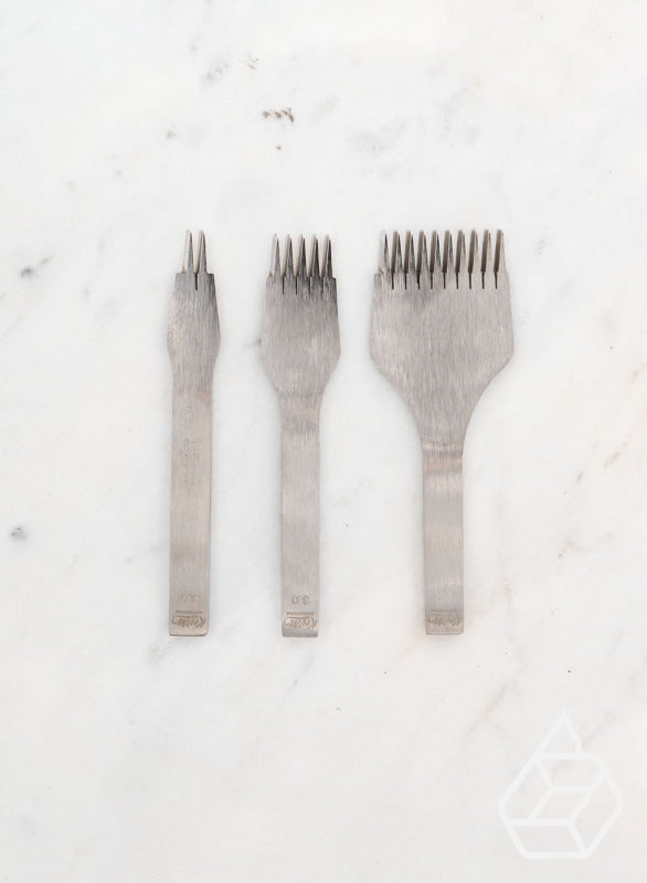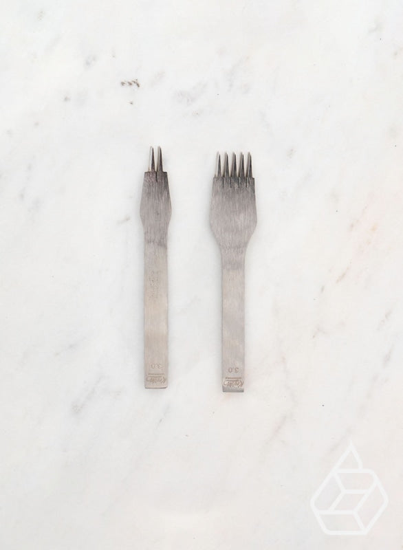 Leervorken zijn onmisbare hulpmiddelen voor leerbewerkers. Ze worden gebruikt om gelijkmatig verdeelde gaten af te tekenen voordat je begint met stikken. Bij Leatherbox vind je een veelzijdige collectie, bestaande uit twee hoofdstijlen: Franse en Diamant leervorken. Beide stijlen zijn ontworpen met precisie en duurzaamheid, zodat je handstikwerk er niet alleen prachtig uitziet, maar ook jarenlang meegaat.