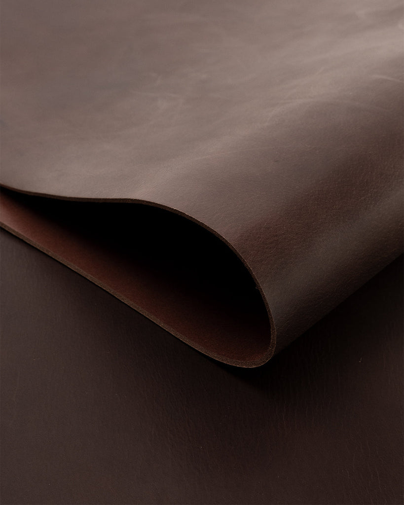 Het buffelleer van de Austin collectie is een licht geschuurd nerfleer met een robuuste, rustieke uitstraling. Dankzij de combinatie van een chroomlooiing met plantaardige nalooiing krijgt dit leer een stevige, standige body en een lichte pull-up. De afwerking met een full aniline wax zorgt voor een matte, natuurlijke look en een oppervlak dat met gebruik alleen maar mooier wordt.