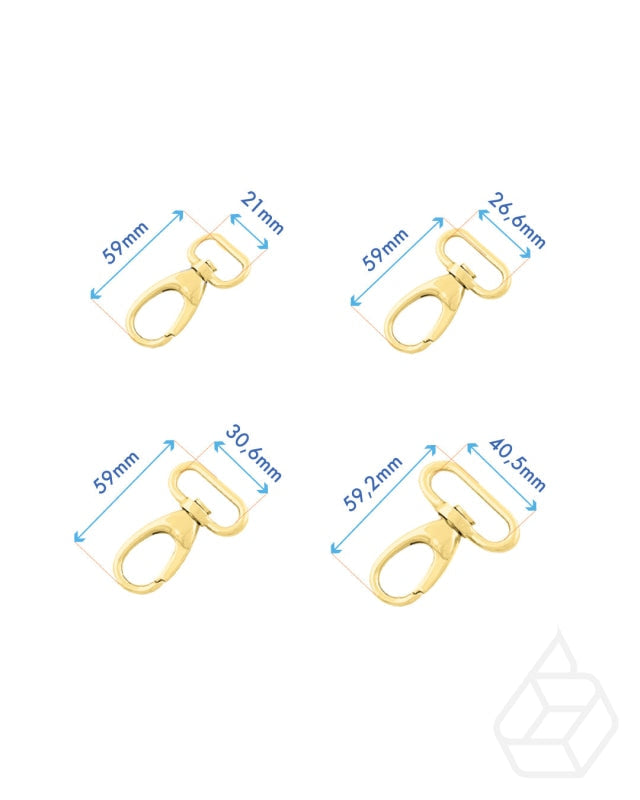 Stijlvolle musketonhaak met druppelvormig oog en goud- of zilverkleurige finish. Mooi te gebruiken voor je eigen ontworpen tas of lederen accessoires. Beschikbaar in de binnenmaten 21 mm, 26,6 mm, 30,6 mm en 40,5 mm. Dit is één van de topkwaliteit musketonhaken uit ons assortiment fournituren uit Italië.