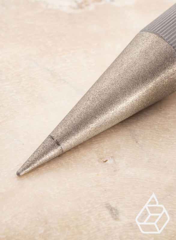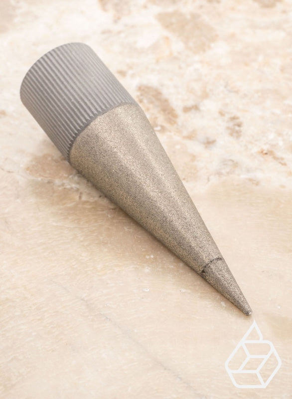 Met een botte holpijp kun je geen mooie gaten meer in je leer ponsen. Maak je holpijpen aan beide kanten weer scherp met deze speciale slijptool. Gebruik de spitste punt van de slijpkegel voor de binnenzijde van de holpijp. De buitenkant van de holpijp maak je weer scherp door deze in de achterkant van de slijpkegel te steken en met een draaiende beweging te slijpen.