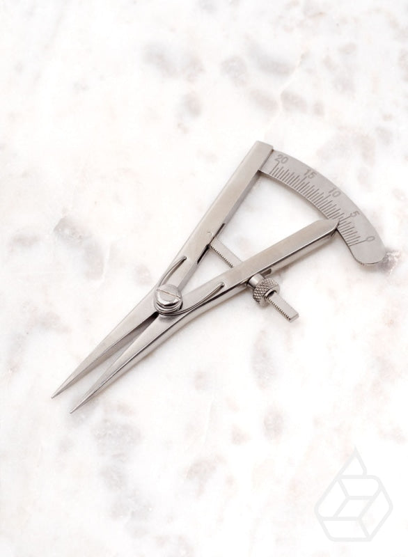 This basic wing divider is a useful tool for novice and experienced leatherworkers who want to start hand stitching. You use the compass to draw parallel lines on the leather, to place your stitching prongs in a straight line, or to mark curves. The wing divider features a turning wheel, which keeps it stable and allows it to be locked at the desired width.