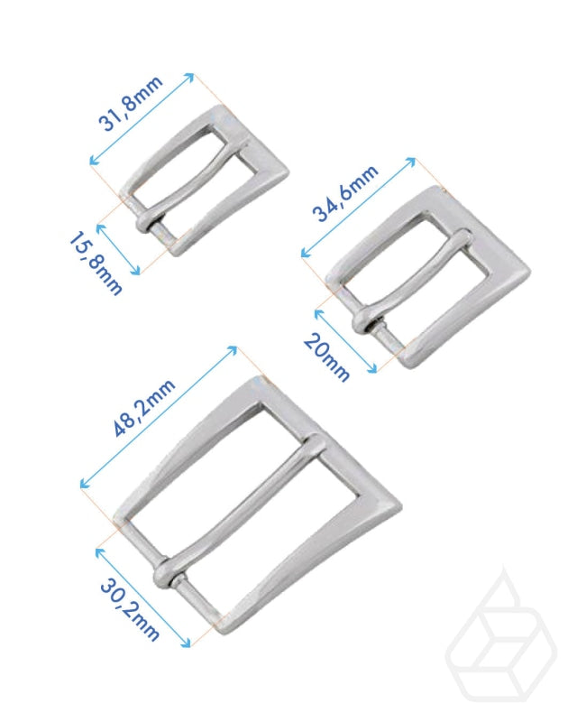 Rectangular buckle with a silver finish. Great to use for your own designed bag, belt or leather accessories. Available in inner sizes 15.8 mm, 20 mm and 30.2 mm. This is one of the top quality buckles from our range of leather hardware from Italy.