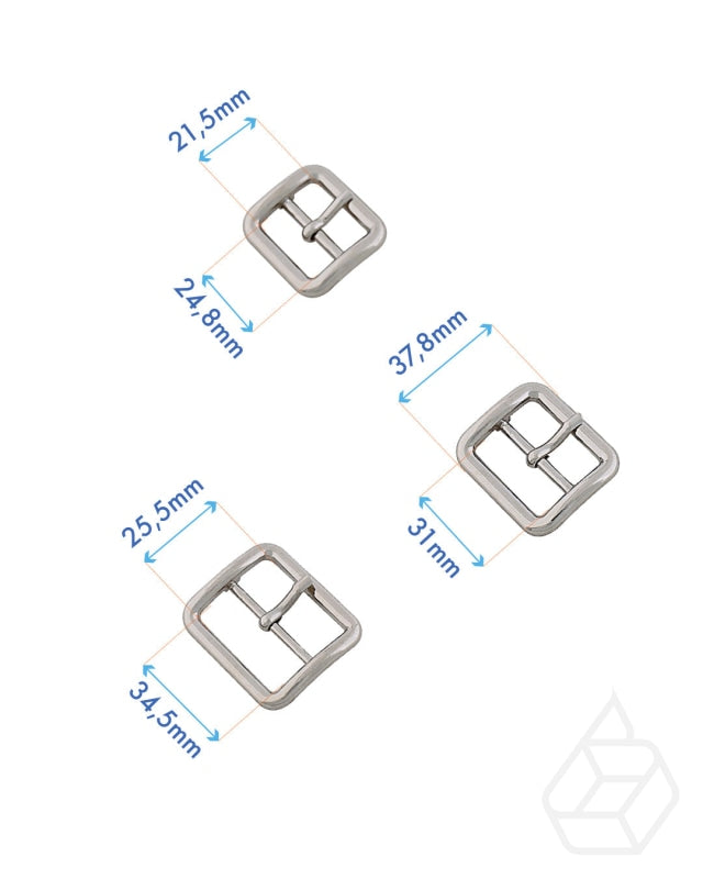 Rectangular buckle with center bar and silver finish. Great to use for your own designed bag, belt or leather accessories. Available in inner sizes 31 mm. This is one of the top quality buckles from our range of leather hardware from Italy.