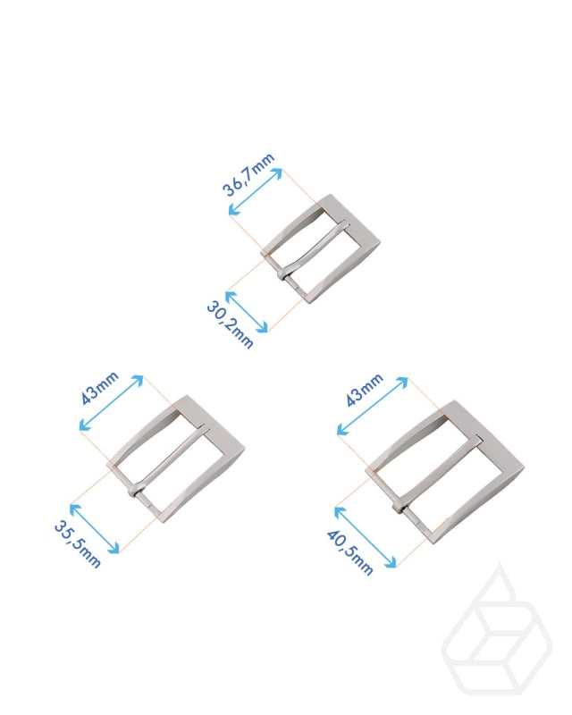 Tight, rectangular buckle with a silver finish. Great to use for your own designed bag, belt or leather accessories. Available in inner sizes 30.1 mm, 35.5 mm and 40.5 mm. This is one of the top quality buckles from our range of leather hardware from Italy.