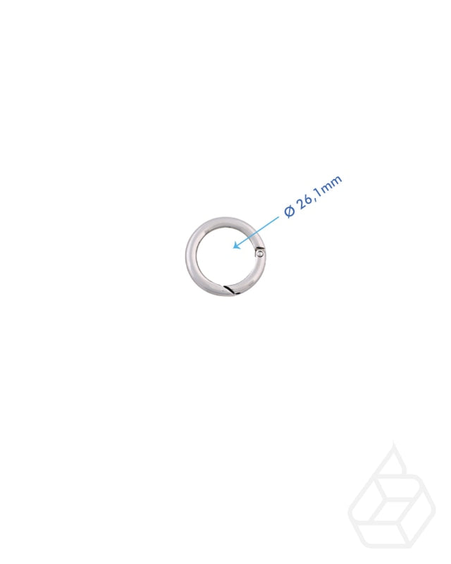 Round O-Ring snap hook with a silver finish. Great to use for your own designed bag or leather accessories. Available in the inner size 26,1mm. This is one of the top quality snap hooks from our range of leather hardware from Italy.