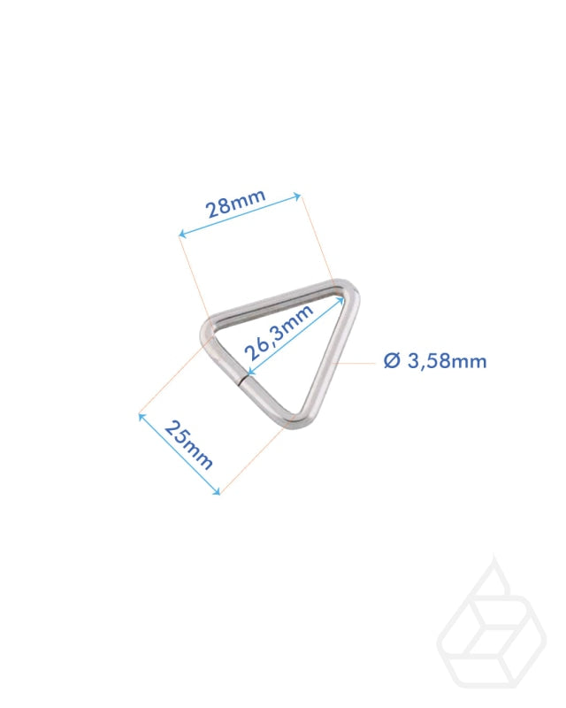 Triangular ring with a silver finish. Great to use for your own designed bag or leather accessories. Available in the inner size 25mm. This is one of the top quality rings from our range of leather hardware from Italy.