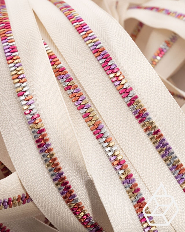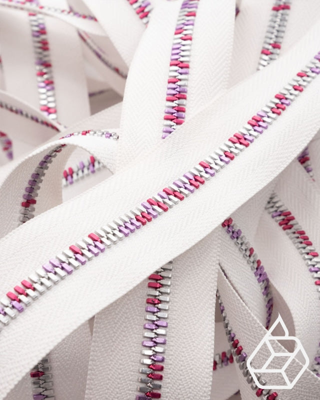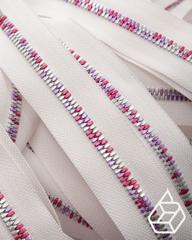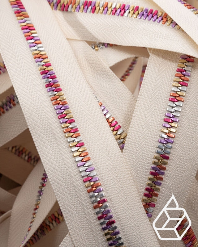 Order the zipper per meter on the desired one maat and make it completely to your liking with closers and pullers in different designs.